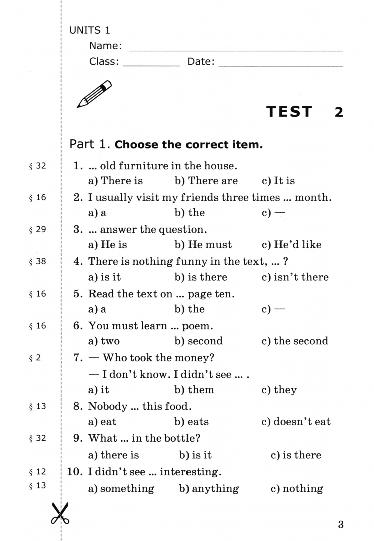 В пособие включены проверочные задания для контроля усвоения грамматического материала 7 класса. Проверка проводится в конце каждой четверти. Каждая работа имеет четыре варианта. Дома учащиеся готовятся к проверочной работе, просматривая все варианты. На уроке преподаватель сообщает, какой именно вариант следует сделать. Учащиеся выполняют задания, вырезают страницу и сдают её на проверку. Если при подготовке возникнут сложности, то прочитать соответствующее правило и найти ответ можно в КНИГЕ ДЛЯ РОДИТЕЛЕЙ. Номер соответствующего параграфа указан рядом с каждым заданием.