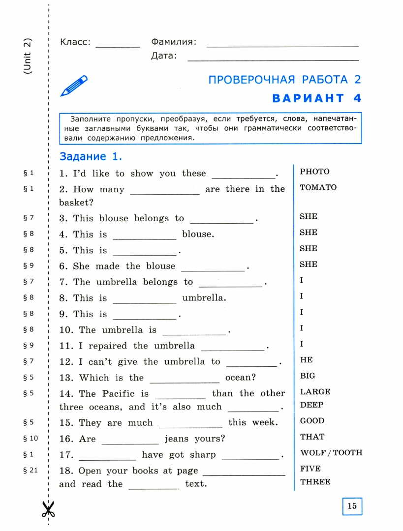 В пособие включены проверочные задания для контроля усвоения грамматического материала шестого класса. Каждая работа имеет четыре варианта. Дома учащиеся готовятся к проверочной работе, просматривая все варианты. На уроке преподаватель сообщает, какой именно вариант следует сделать. Учащиеся выполняют задания, вырезают страницу из книжки и сдают ее на проверку. Если дома при подготовке возникнут сложности, то помочь детям смогут родители. Для этого рядом с каждым заданием указан номер соответствующего параграфа КНИГИ ДЛЯ РОДИТЕЛЕЙ.