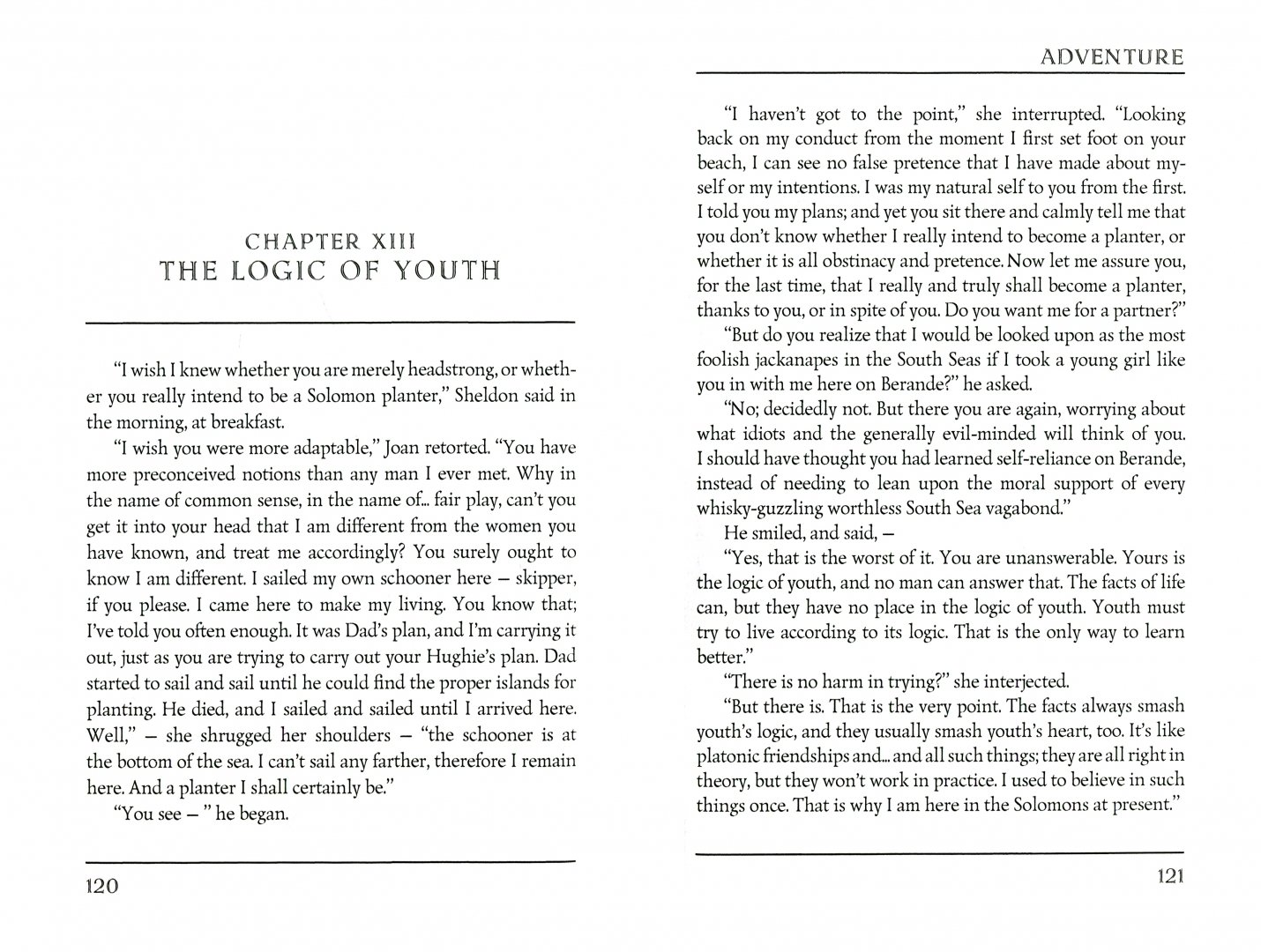 Jack London (1876-1916) was an American novelist, journalist and social activist. Pioneering the genre of magazine fiction and prototyping science fiction, he became one of the first writers, who gained worldwide fame and a large fortune. "Adventure" tells the story a man who finds himself alone on a plantation, harassed by local cannibals and an independent and liberated woman whose arrival at the place changes everything. The novel explores the themes of colonialism and slavery set in the Solomon Islands, the differences between races, feminism, and the strength of the spirit, caught in a struggle with nature and society.