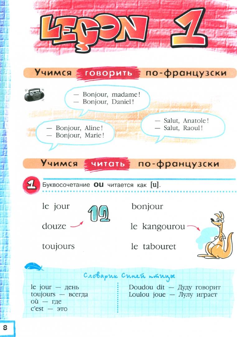 Диалоги, тексты, стихотворения и песни учебника в записи будут способствовать формированию правильного произношения, естественной мелодике и ритмике французской речи.