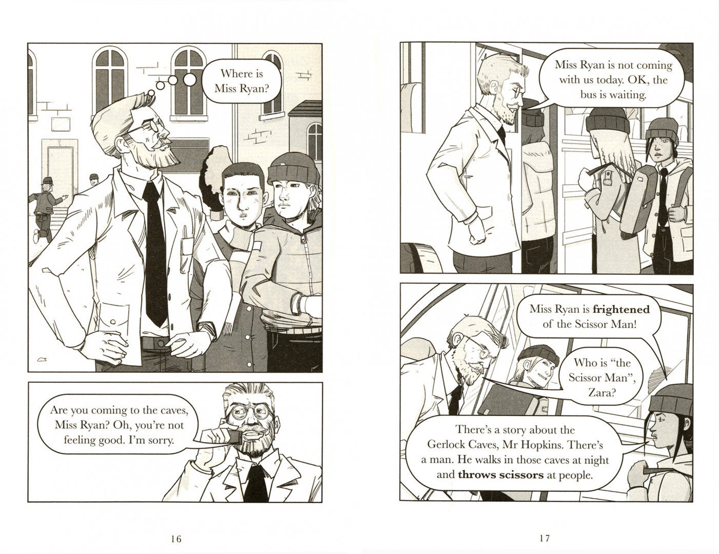 Zara and Joe go with their class to the Gerlock Caves. "There's a story about the Gerlock Caves," Zara tells her teacher. "There's a man. He walks in those caves at night and throws scissors at people."