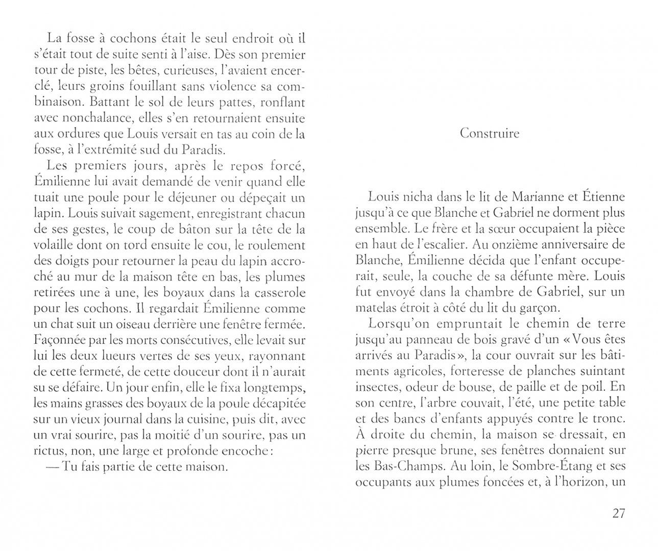 La vie d'Emilienne, c'est le Paradis. Cette ferme isolee, au bout d'un chemin sinueux. C'est la qu'elle eleve seule, avec pour uniques ressources son courage et sa terre, ses deux petits-enfants, Blanche et Gabriel. Les saisons se suivent, ils grandissent. Jusqu'a ce que l'adolescence arrive et, avec elle, le premier amour de Blanche, celui qui devaste tout sur son passage. Il s'appelle Alexandre. Leur couple se forge. Mais la passion que Blanche voue au Paradis la domine tout entiere, quand Alexandre, devore par son ambition, veut partir en ville, reussir. Alors leurs mondes se dechirent. Et vient la vengeance.