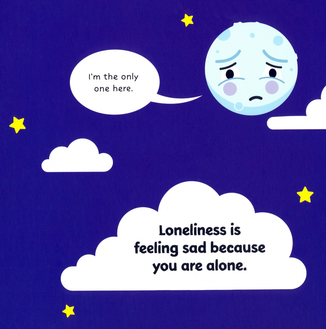 This adorable first emotions book introduces children to the feeling of loneliness, what happens inside our bodies and all the things you can do to stop feeling lonely. The Moon character is here to help your little ones recognise and understand loneliness and the possible reasons why they might feel lonely.