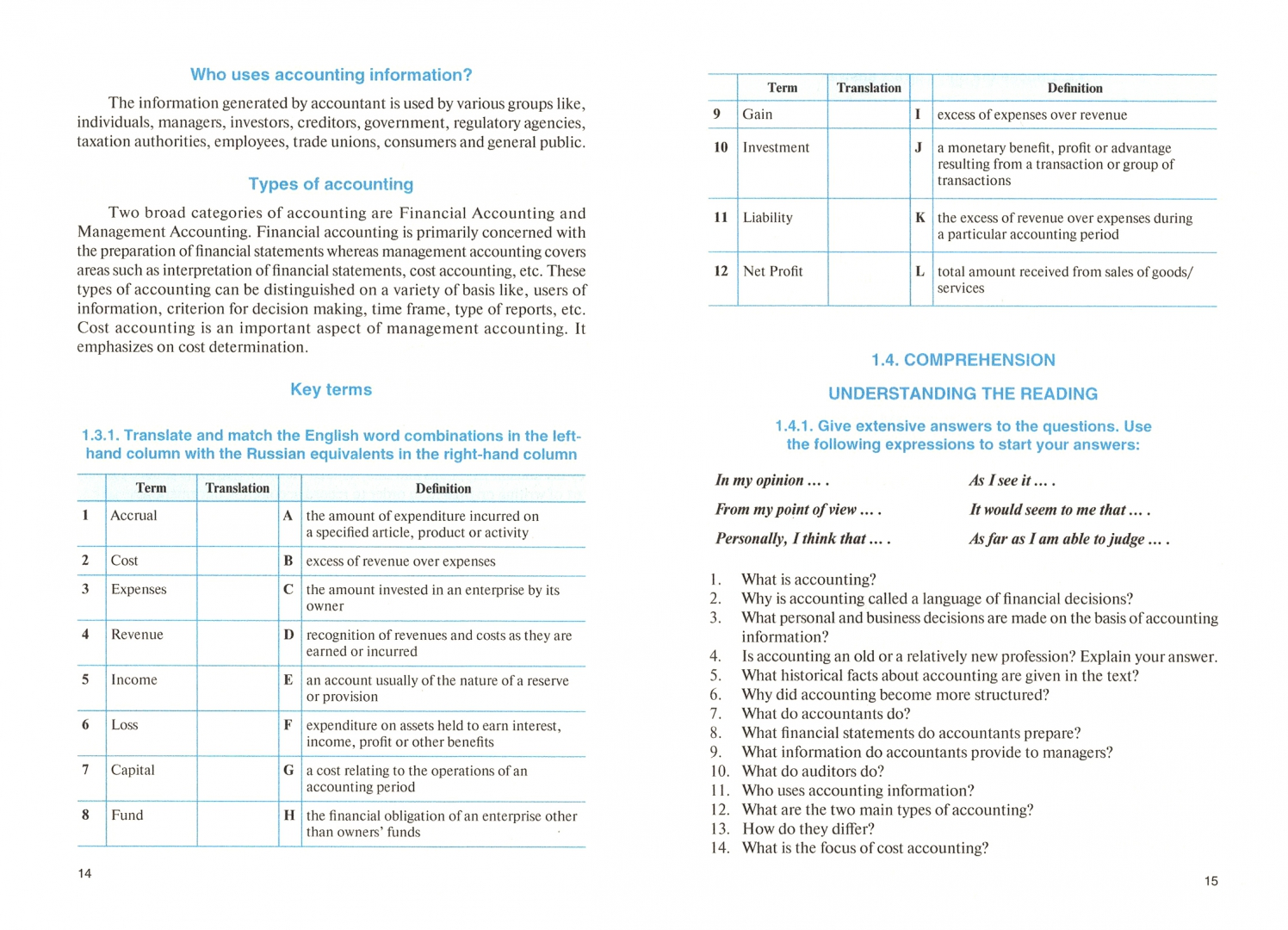 Тематика учебника отражает специальность «Экономика и бухгалтерский учет». Все разделы снабжены аутентичными текстами профессионально ориентированного характера, лексическими и грамматическими упражнениями, ролевыми играми и предусматривают использование цифровых технологий и активных методов обучения. Нацелен на развитие общекультурных, общепрофессиональных и профессиональных знаний, умений и навыков.