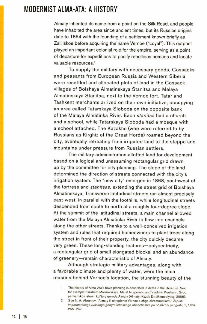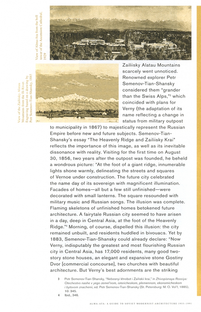 Сегодня Алма-Ату можно назвать "столицей советского модернизма". Если былые соперники по части архитектуры - Ереван и Киев, Ташкент и Минск - растеряли наследие 1960-1980-х, в Алма-Ате оно не понесло столь тяжких утрат: в 1997 году столичные функции были передоверены Астане, которая и занялась архитектурной репрезентацией независимого Казахстана. Алма-Ата же остается действующим музеем советского модернизма, где можно увидеть и первую в мире прозрачную библиотеку, и первый в СССР постмодернистский небоскреб, и плотину, построенную самым мощным в истории направленным взрывом.
