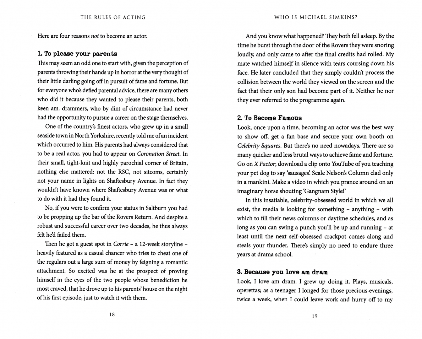 'Throw out An Actor Prepares! Michael Simkins' book tells actors all they need to know about the realities of the acting profession; the passion, the struggle, the noble idealism and the heartache.'