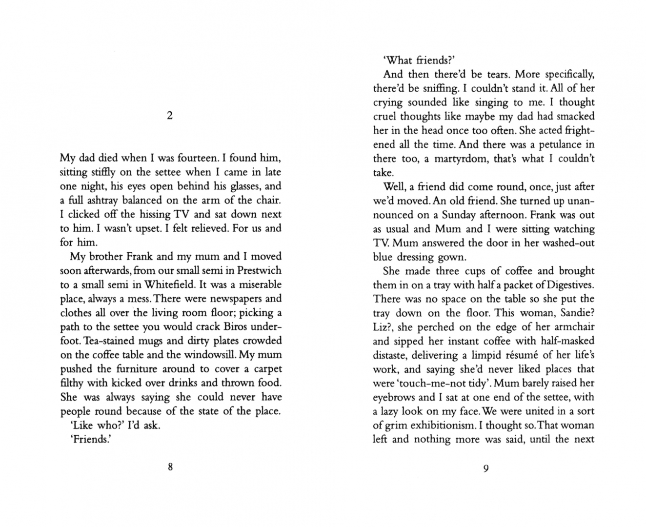 Carmel McKisco is wry, volatile and full of longing: a twenty-year-old girl working nights in a Manchester dive bar. Cut off from her family, and from Tony, her carefree ex, she forges strange alliances with her customers, and daydreams, half-heartedly, about escaping to Cornwall.