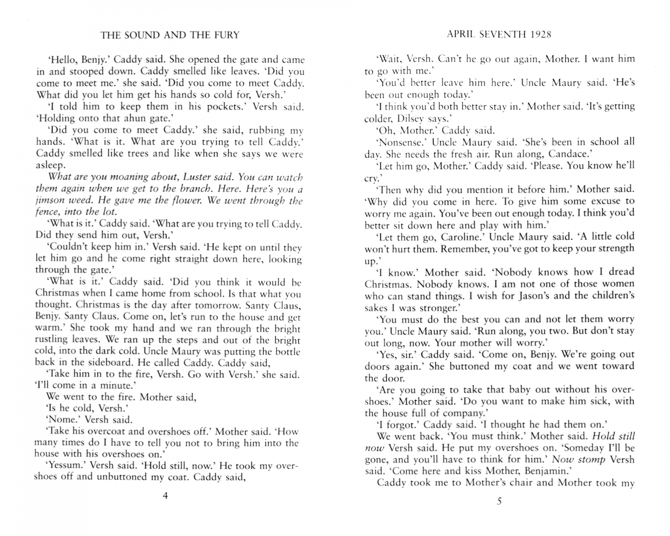 Ever since the first furore was created on its publication in 1929, The Sound and the Fury has been considered one of the key novels of this century. Depicting the gradual disintegration of the Compson family through four fractured narratives, the novel explores intense, passionate family relationships where there is no love, only self-centredness. At its heart, this is a novel about lovelessness - 'only an idiot has no grief; only a fool would forget it.
