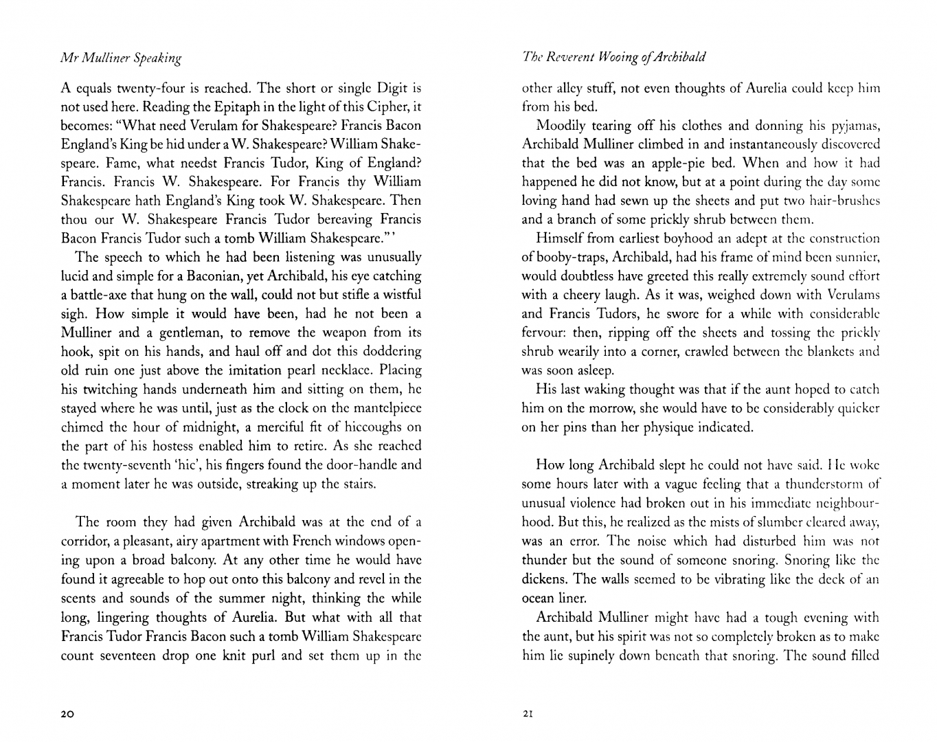 In the bar-parlour of the Angler's Rest, Mr Mulliner tells his amazing tales, which hold his audience of drinkers (referred to only as Pints of Stout and Whiskies-and-Splash) in the palm of his expressive hand. Here you can discover what happened to The Man Who Gave Up Smoking, share a frisson when the butler delivers Something Squishy on a silver salver ('Your serpent, Sir,' said the voice of Simmons) - and experience the dreadful Unpleasantness at Bludleigh Court. Throughout the Mulliner clan remains resourcefully in command in the most outlandish situations, making for a vintage collection of hilarious Wodehouse.