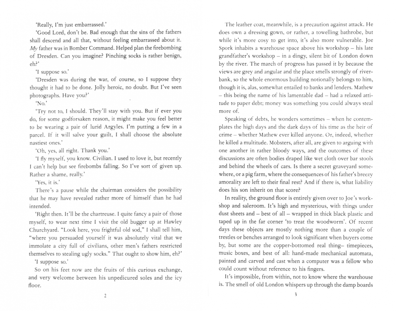Joe Spork, son of the infamous criminal Mathew 'Tommy Gun' Spork just wants a quiet life, repairing clockwork in a wet, unknown bit of London.