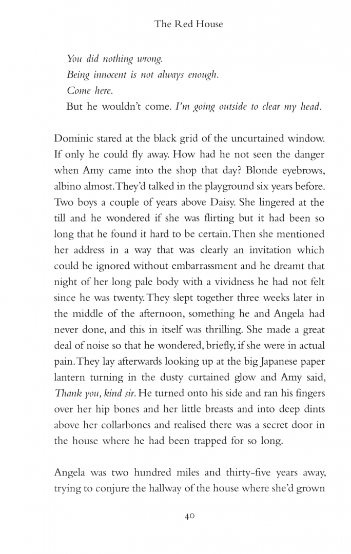 Angela and her brother Richard have spent twenty years avoiding each other. Now, after the death of their mother, they bring their families together for a holiday in a rented house on the Welsh border. Four adults and four children. Seven days of shared meals, log fires, card games and wet walks.