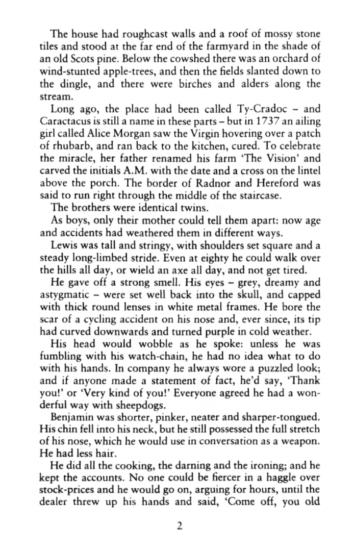 On the Black Hill is an elegantly written tale of identical twin brothers who grow up on a farm in rural Wales and never leave home. They till the rough soil and sleep in the same bed, touched only occasionally by the advances of the twentieth century.