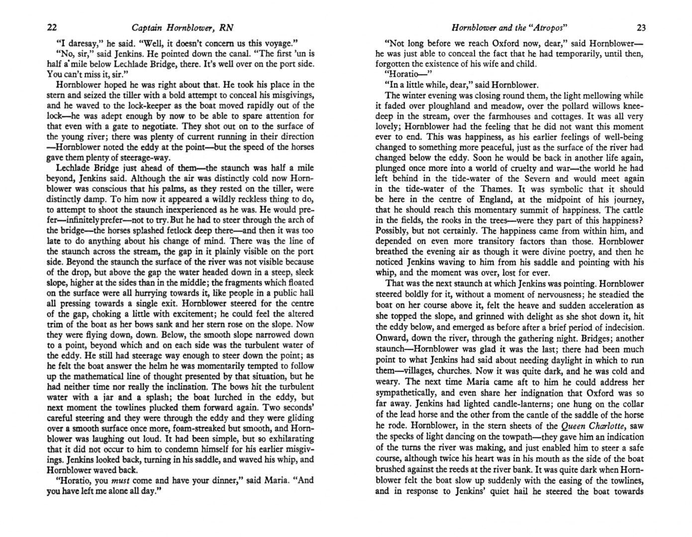Skippering the flagship for Nelson's funeral on the Thames is not Hornblower's idea of thrilling action. But soon his orders come, and he sets sail for the Mediterranean in the Atropos. Battle, storm, shipwreck, disease - what were the chances that he would never come back again?