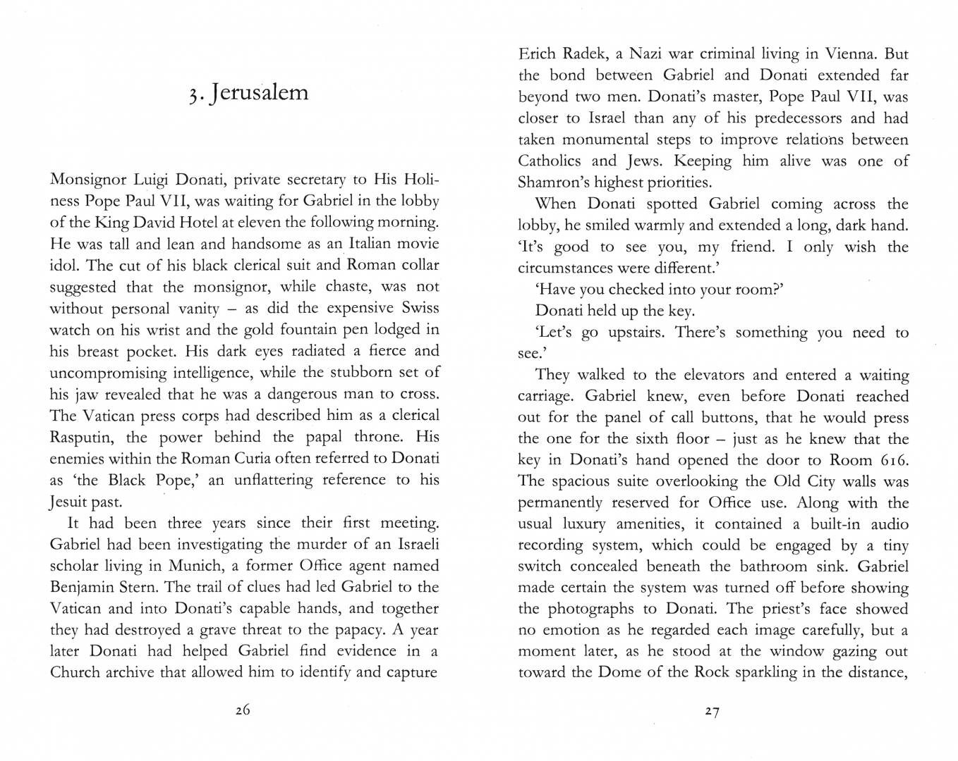 Allon warns the Pope’s private secretary, his old friend Monsignor Luigi Donati, and rushes to Rome to assist in the security. But what neither he nor Donati knows is that the Vatican has been thoroughly penetrated. An extraordinary enemy walks among them … and he’s just getting started.