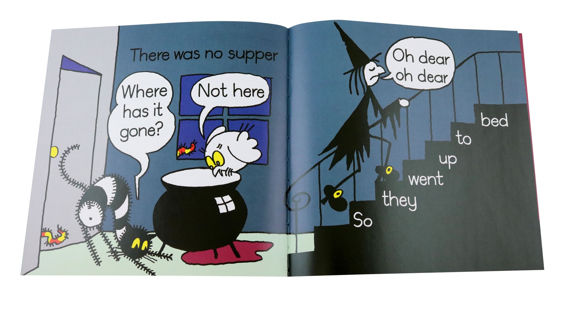Mog and Owl are hungry, so Meg makes a spell. It goes wrong and they all go to bed without any supper, but Mog and Owl are still hungry...
