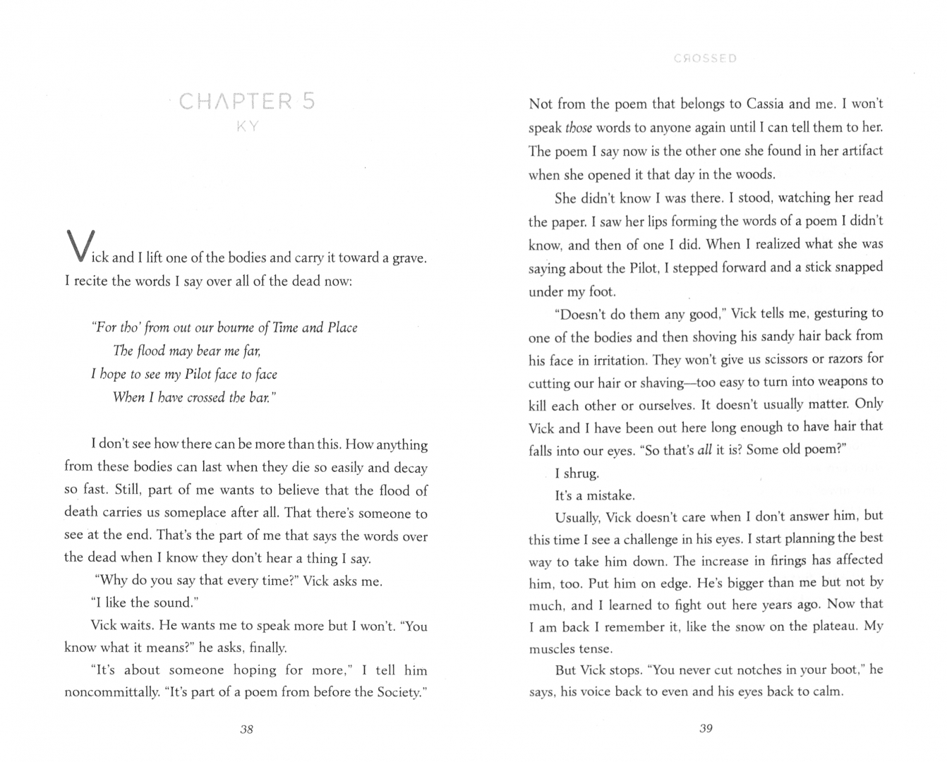 Narrated from both Cassia's and Ky's points of view, this hotly anticipated sequel to Matched will take them both to the edge of Society, where nothing is as expected and crosses and double-crosses make their path more twisted than ever . . .