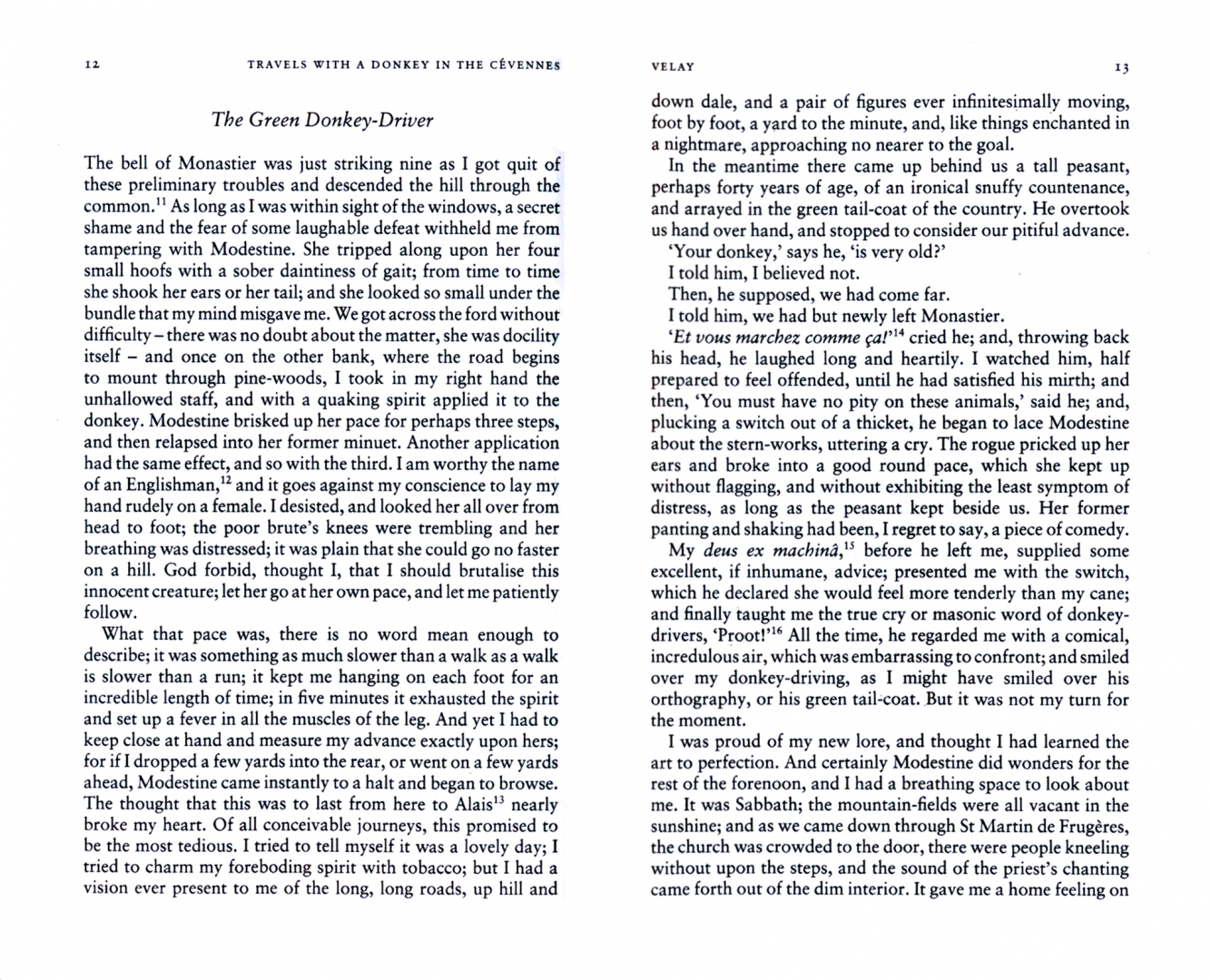In 1878, Robert Louis Stevenson was suffering from poor health, struggling to survive on the income derived from his writings, and tormented by his infatuation with Fanny Osbourne, a married American woman. His response was to embark on a journey through the Cevennes with a donkey, Modestine, and a notebook, which he later transformed into Travels with a Donkey. Just a few months after publication, Stevenson was off again - this time crossing the Atlantic and the breadth of America in the hope of being re-united with Fanny, an experience he recorded in The Amateur Emigrant. Both pieces are classics of travel writings, which reveal as much about Stevenson's character as the landscape he travels through.