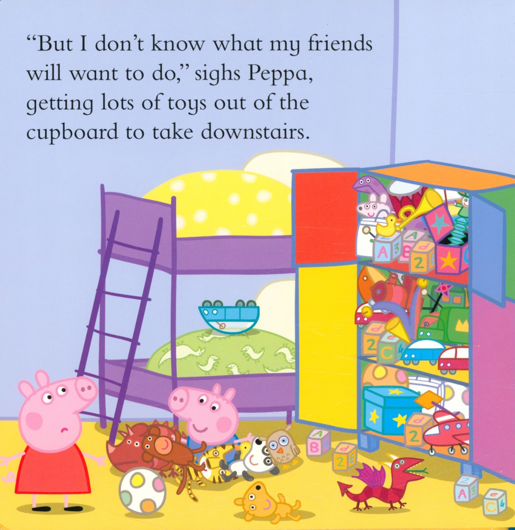 Peppa, Mandy, Peggi and Pandora have got lots of ideas for fun and games to keep everyone entertained. Mummy and Daddy Pig make sure that Peppa and friends have a brilliant day!