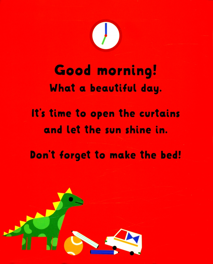 In It's Time to... Clean Up! the moving sliders and transformative flaps on every page allow toddlers to perform the tasks in the simple text - they can vacuum the floor, wash the dishes and even hang up the washing!