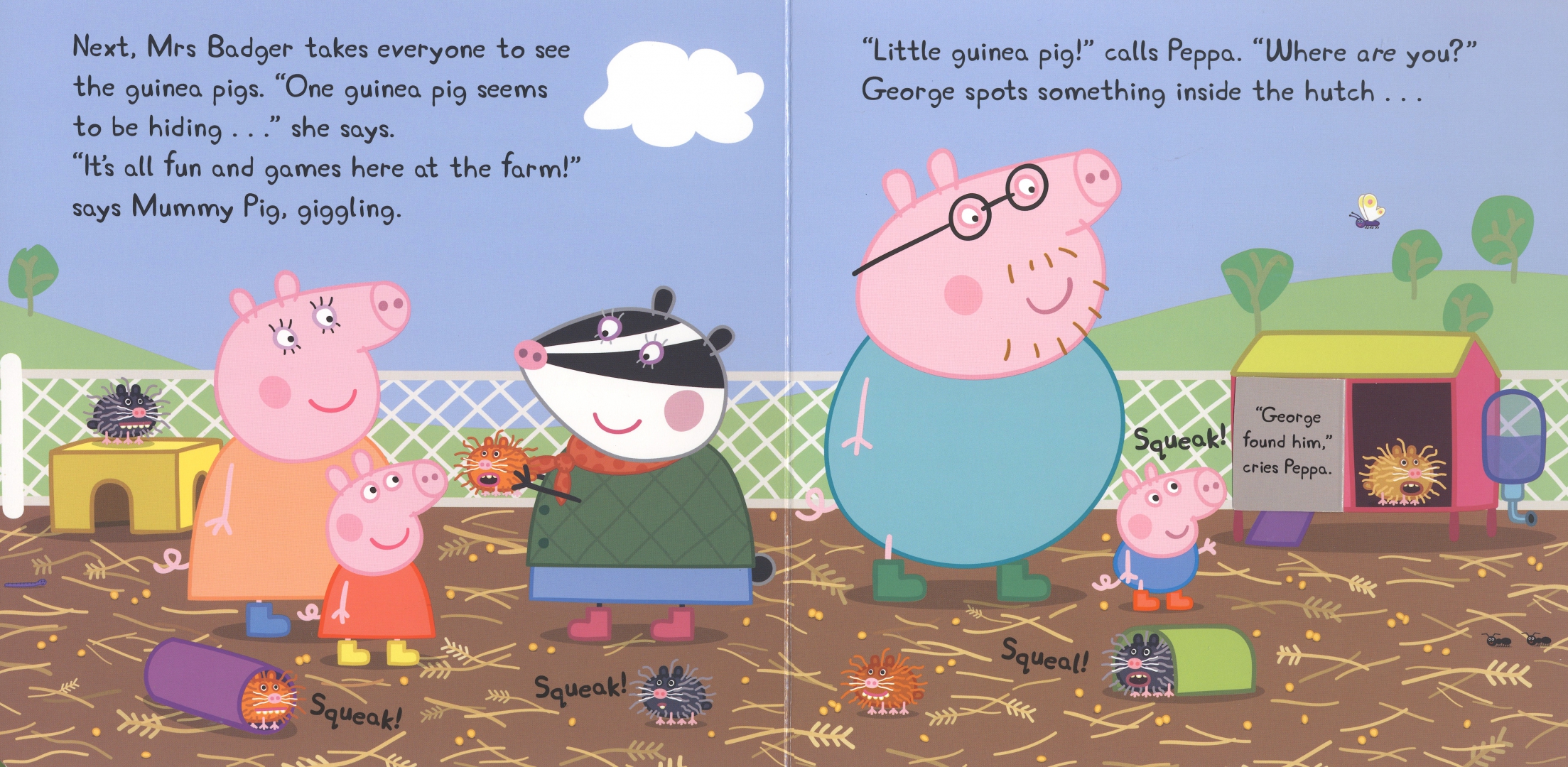 Peppa and George are at Mrs Badger's petting farm to visit the animals. But where are they all hiding? Could they be behind the door, in the bush or in the hutch? Lift the flaps to find out!
