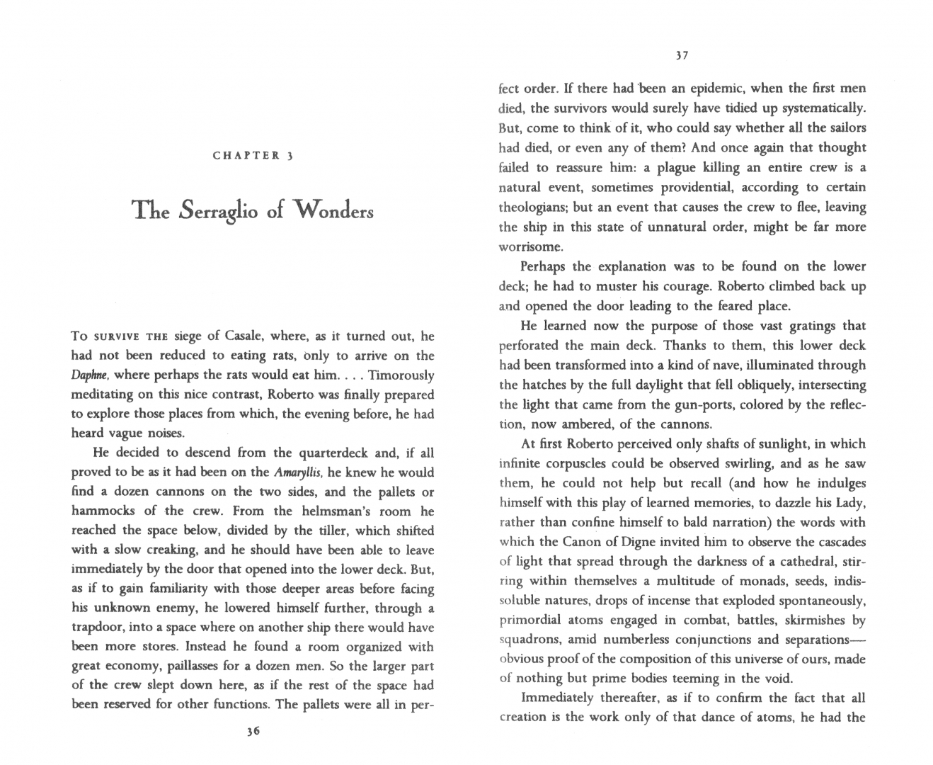 The year is 1643. Roberto, a young nobleman, survives war, the Bastille, exile and shipwreck as he voyages to a Pacific island straddling the date meridian. There he waits now, alone on the mysteriously deserted Daphne, separated by treacherous reefs from the island beyond: the island of the day before. If he could reach it, time - and his misfortunes - might be reversed. But first he must learn to swim...