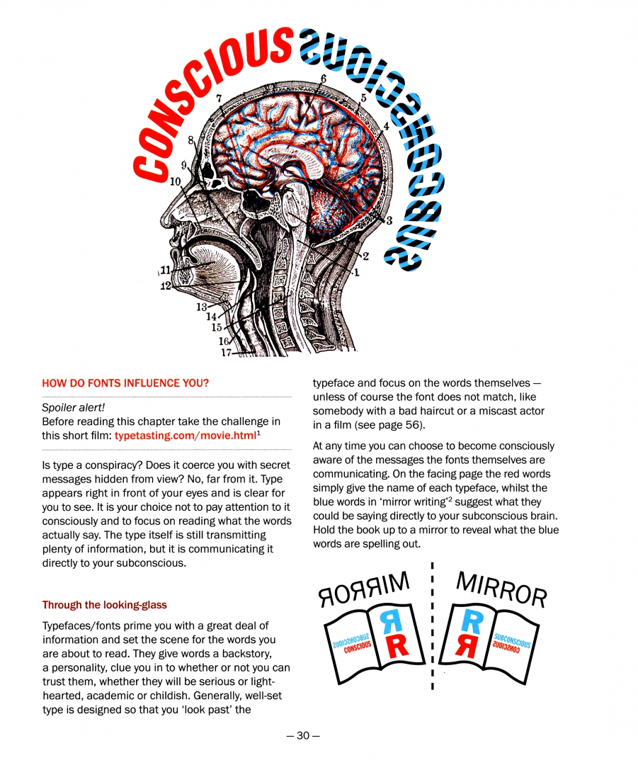 This book opens up the science and the art behind how fonts influence you. It explains why certain fonts or styles evoke particular experiences and associations. Fonts have different personalities that can create trust, mistrust, give you confidence, make things seem easier to do or make a product taste better. They're hidden in plain sight, they trigger memories, associations and multisensory experiences in your imagination.