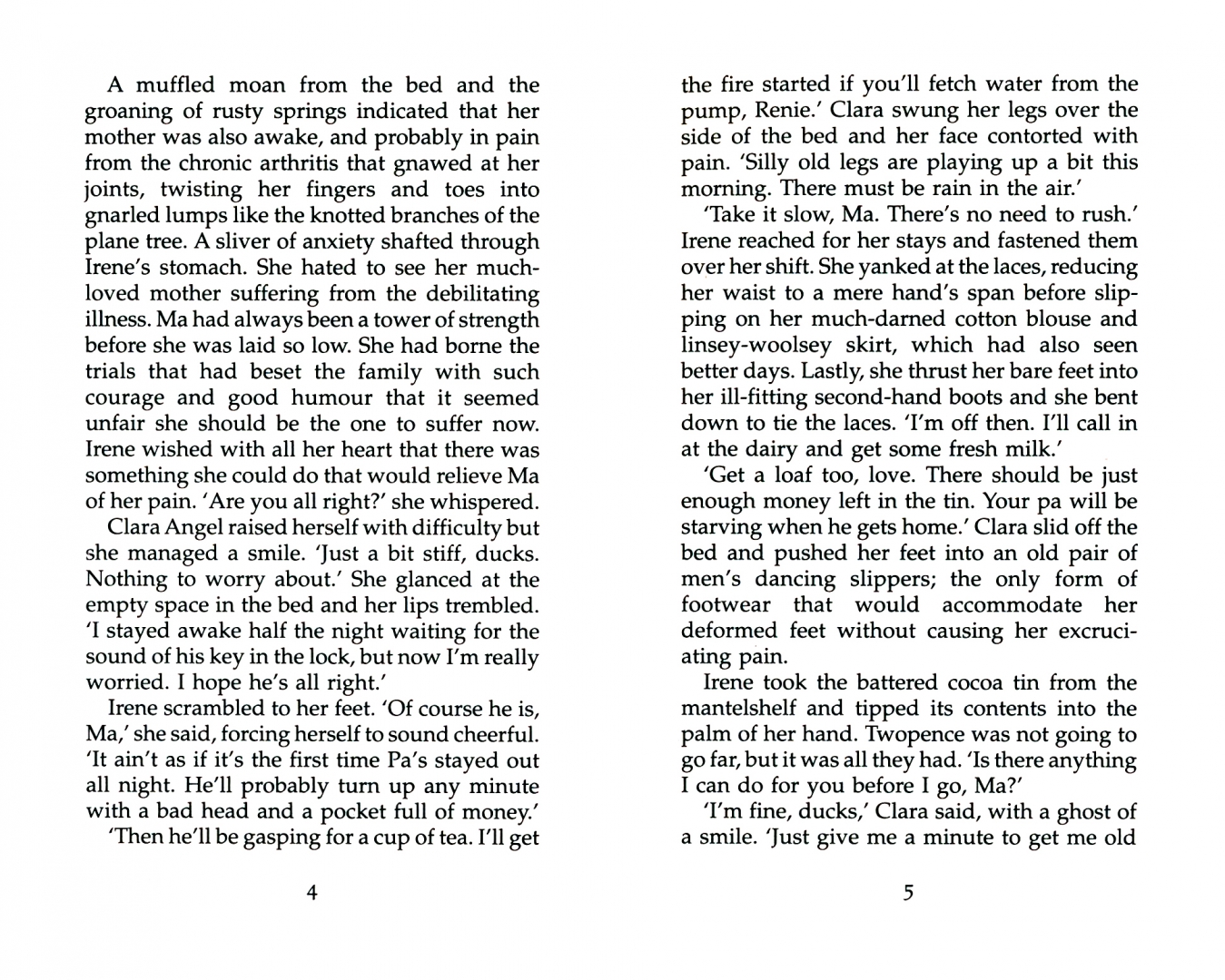 Eighteen-year-old Irene Angel lives with her parents in a tiny room above the shop where her mother ekes out a living selling pickles and sauces while her father Billy gambles away their earnings. It is all Irene can do to keep the family together.