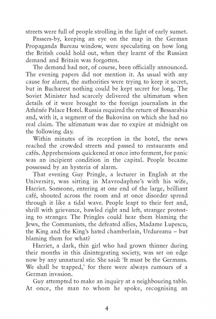 Bucharest, 1940. The city is on the brink of invasion and Guy and Harriet Pringle find their position growing ever more dangerous. Harriet longs for safety, while Guy's idealism frustrates his new wife. But when the Germans march in, Guy believes they must separate in a desperate bid to find safety, so Harriet leaves for Athens. The Spoilt City is a dramatic and colourful portrait of a city in turmoil, and of a young couple struggling to make their marriage work in the face of adversity.