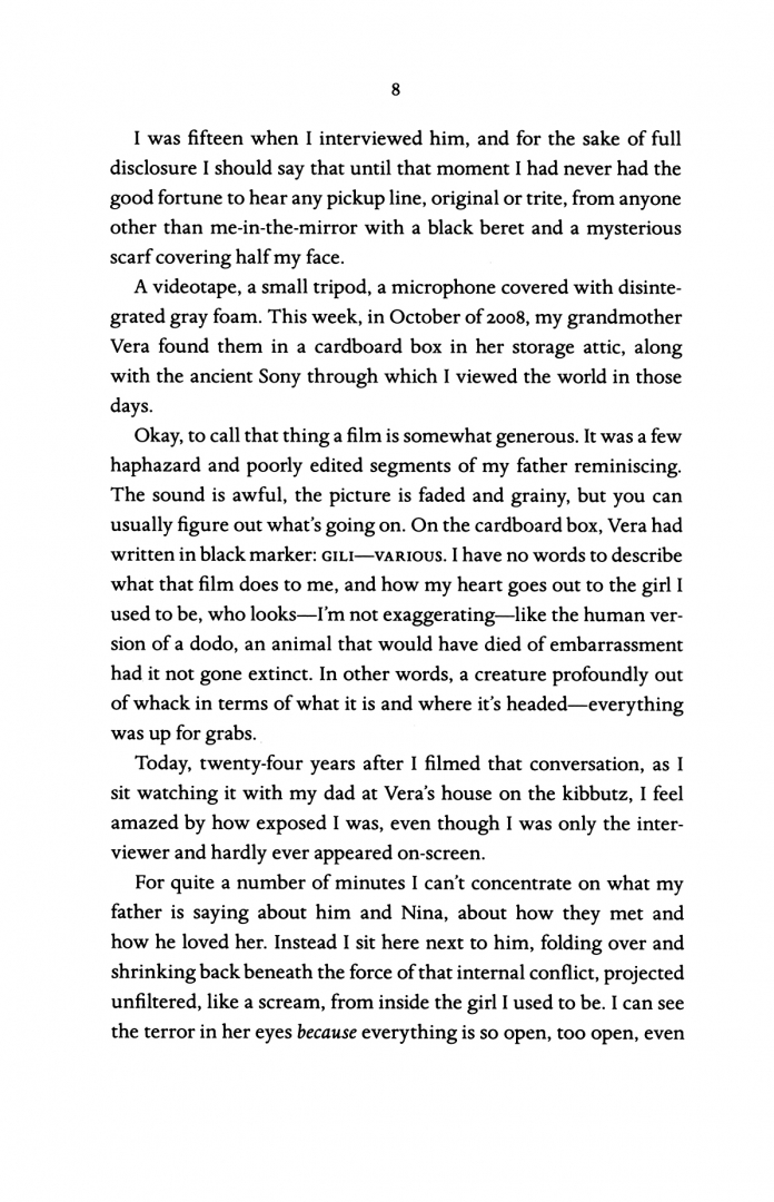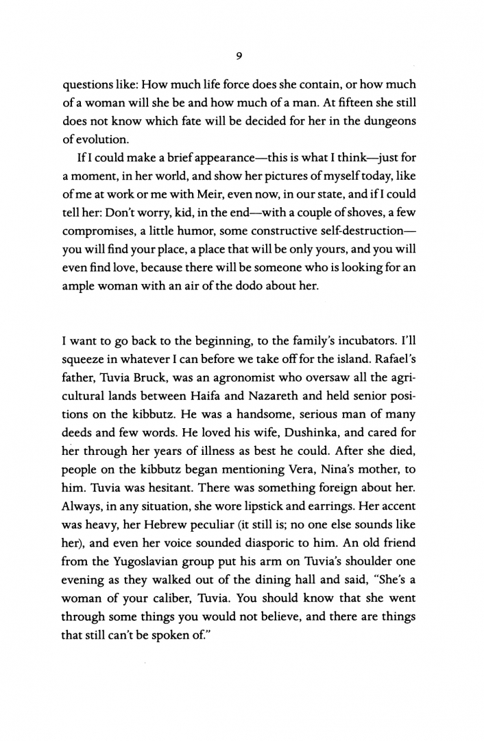 On a kibbutz in Israel in 2008, Gili is celebrating the ninetieth birthday of her grandmother Vera, the adored matriarch of a sprawling and tight-knit family. But festivities are interrupted by the arrival of Nina: the iron-willed daughter who rejected Vera's care; and the absent mother who abandoned Gili when she was still a baby.
