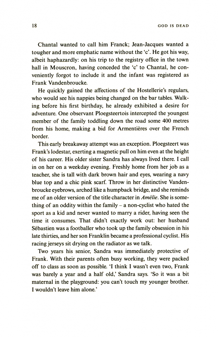 Led by candid contributions from his closest family, friends and associates, William Hill award-winning author Andy McGrath lays bare Vandenbroucke's turbulent life story. God is Dead is the compelling biography of this mercurial cycling prodigy.