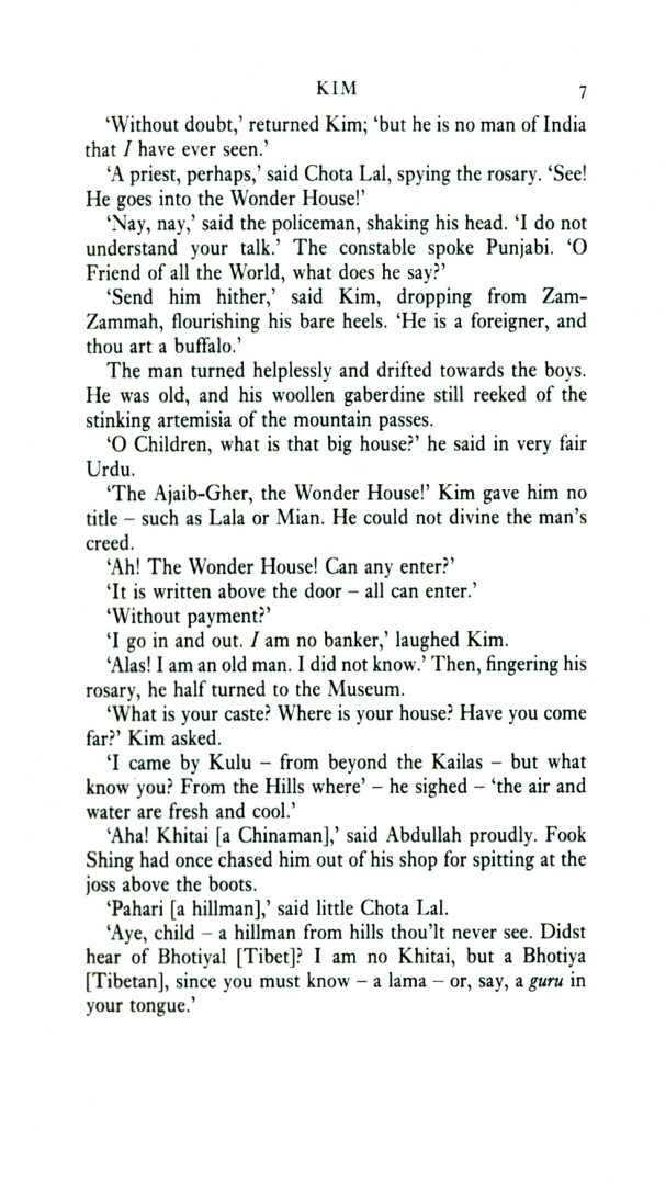 Kipling's masterpiece is perhaps the most remarkable literary product of British India. The story of a half-caste boy, part Indian part Irish who journeys throughout the subcontinent with an aged lama in search of religious enlightenment, the nominal plot revolves around the Great Game: the struggle between Britian and Russia for control of Afghanistan. But the glory of the book lies less in the amusing picaresque adventures than in the unsurpassed panorama of Indian life they evoke: brilliant, moving and intensely alive.