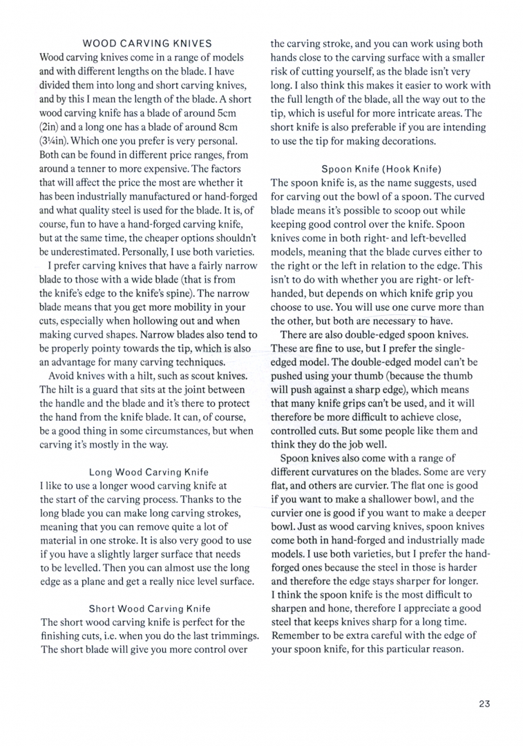 From the all-important wooden spoon to butter knives, salad servers and spatulas, Moa Brannstrom Ott shows you how to create kitchen implements that will bring individuality and personality to your home. As well as this, Carving Kitchen Tools explores the variety of different woods, their properties and the whittling techniques to which they are most suited. With step-by-steps to illustrate the correct grips for knife and wood, tips on how to source your wood and details on the tools you need, this book is the perfect guide to this surprisingly simple and mindful craft.