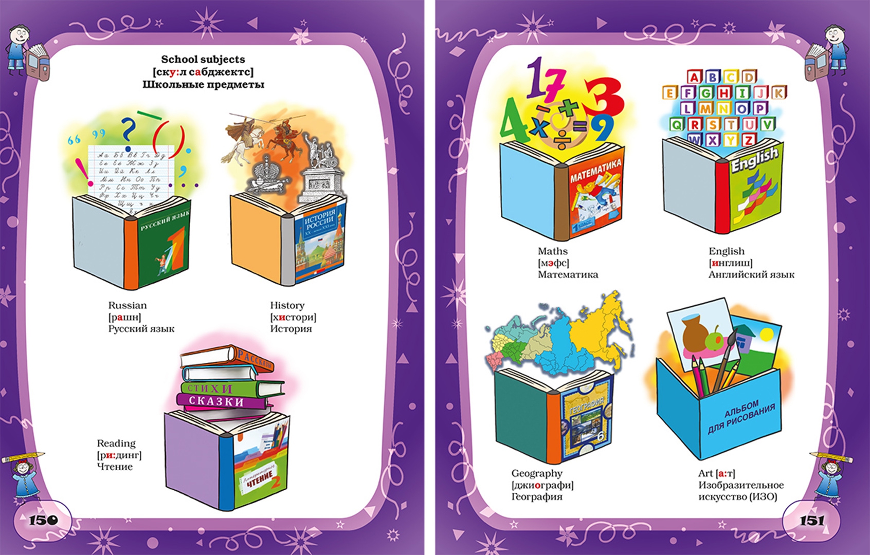 На страницах этой книги ребёнок научится знакомиться на английском языке, рассказывать про свою семью и дом, делать покупки в магазине, узнает, как называются различные фрукты и овощи, еда и посуда, игрушки и одежда, животные и растения, цвета, цифры и дни недели. Также в книге представлены следующие темы для изучения: тело, профессии, город, транспорт, школа, посещение врача, путешествия, месяцы и времена года, время, спорт и праздники. Удачи вам и вашему ребёнку в изучении английского!