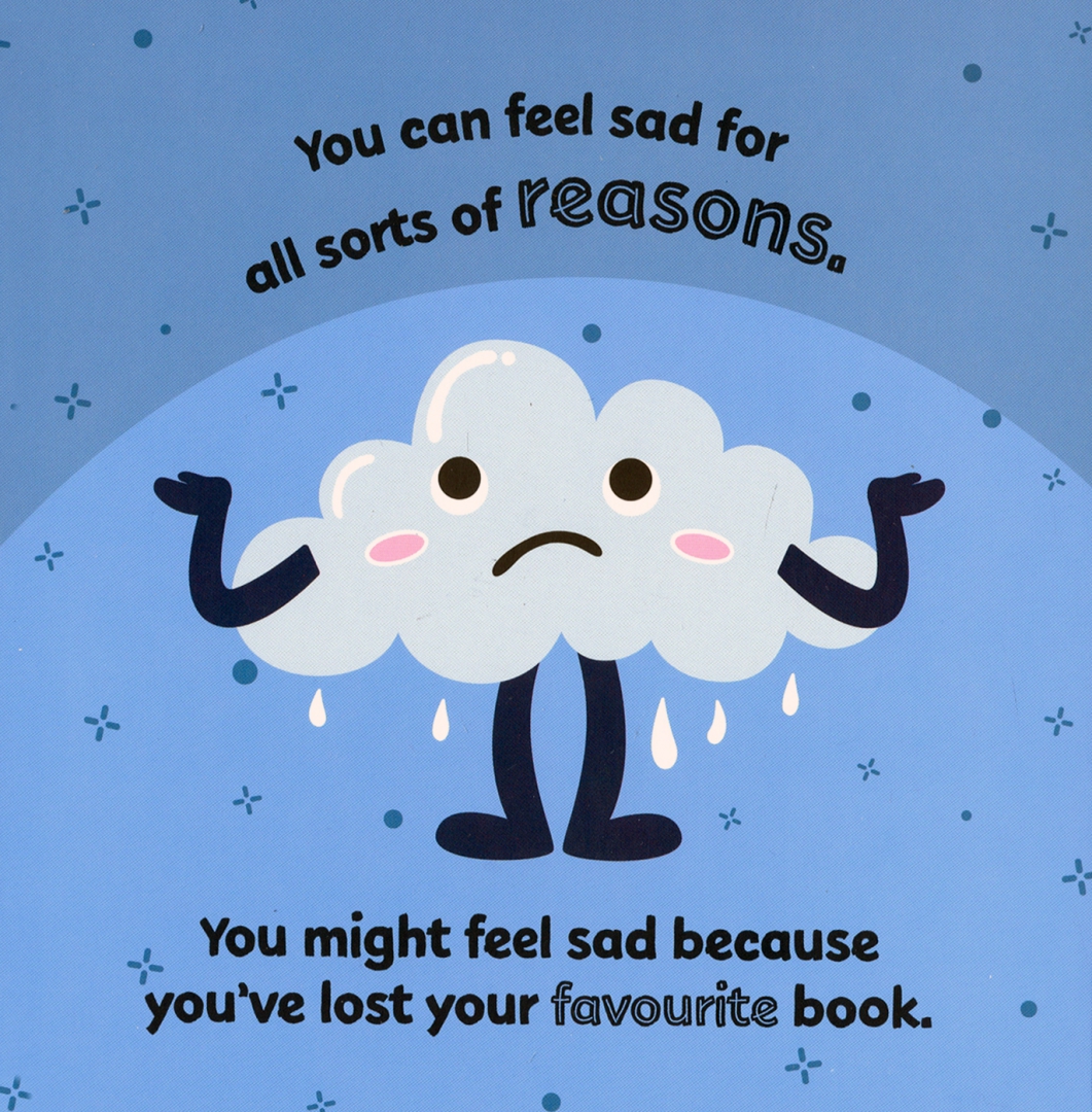 I Feel Sad helps young children understand sadness, describing possible reasons why they might get sad, the different ways sadness looks from the outside, and what to do if you want to stop feeling sad. Adults and children can read along as they follow the story of a little rain cloud who feels down in the dumps and finds ways to cheer themself up again. Questions such as, "Think of some things to say to yourself that make you feel happy" turn the book into an fun, interactive experience.