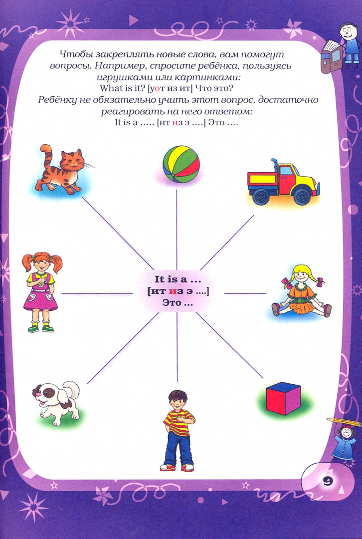 Эту красочную книгу мы издали для детей, которые делают первые шаги в изучении английского языка. Яркие иллюстрации с подписями, интересные задания и весёлые стихи сделают обучение вашего ребёнка увлекательным, похожим на игру. Вместе с ним вы узнаете, как приветствовать друг друга по-английски, какие предметы окружают вас дома, как называются члены вашей семьи и многое другое. Приглашаем вас и вашего ребёнка в путешествие по миру английского языка!