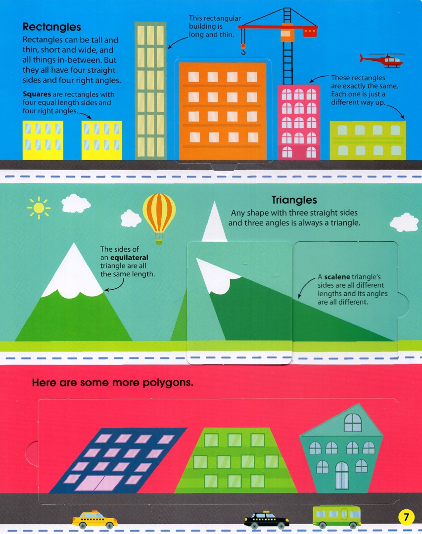 Children will get to know squares, circles, triangles, spheres, cubes, pyramids, and many more, and discover what makes each of these shapes extra important. They'll learn all about sides, corners, vertices, symmetry, turns, and tessellation as they lift the exciting flaps. Little readers can even turn 2-D shapes into 3-D with special net flaps!