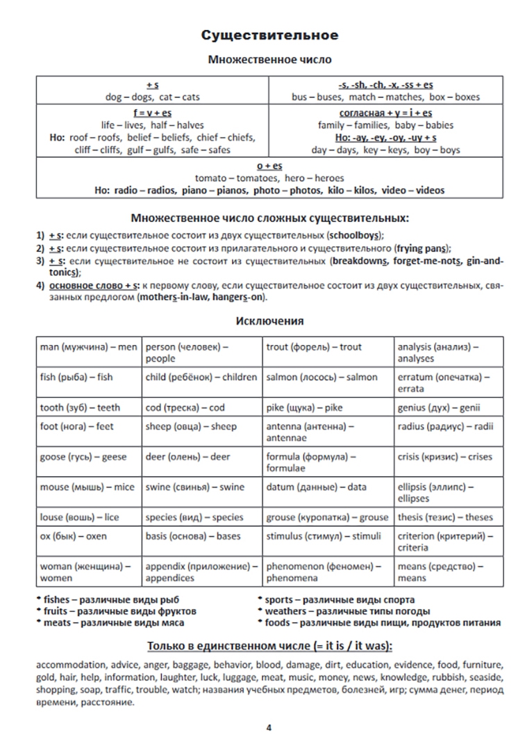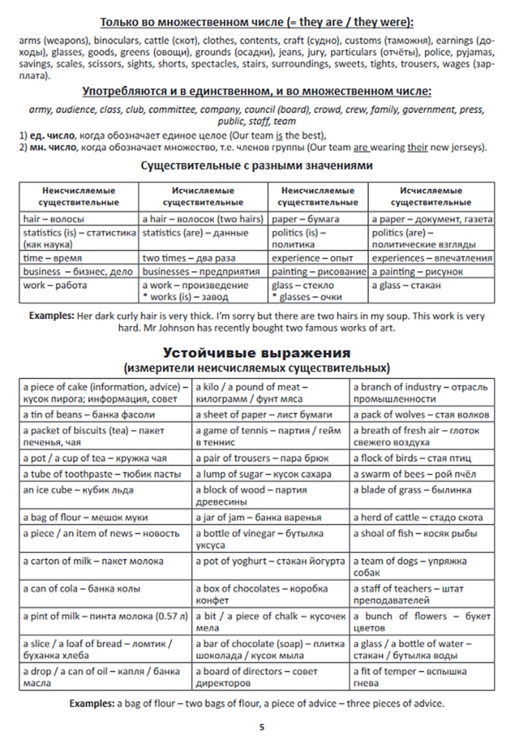 Данное пособие предназначено для подготовки к ЦТ, олимпиадам, ЕГЭ и учебным занятиям по английскому языку. Пособие содержит правила по всем разделам грамматики английского языка. Материал оформлен в виде схем и таблиц, что обеспечивает его оптимальное усвоение. В пособие включено большое количество устойчивых выражений, относящихся ко всем разделам грамматики английского языка, а также приводится наиболее полная таблица неправильных глаголов.