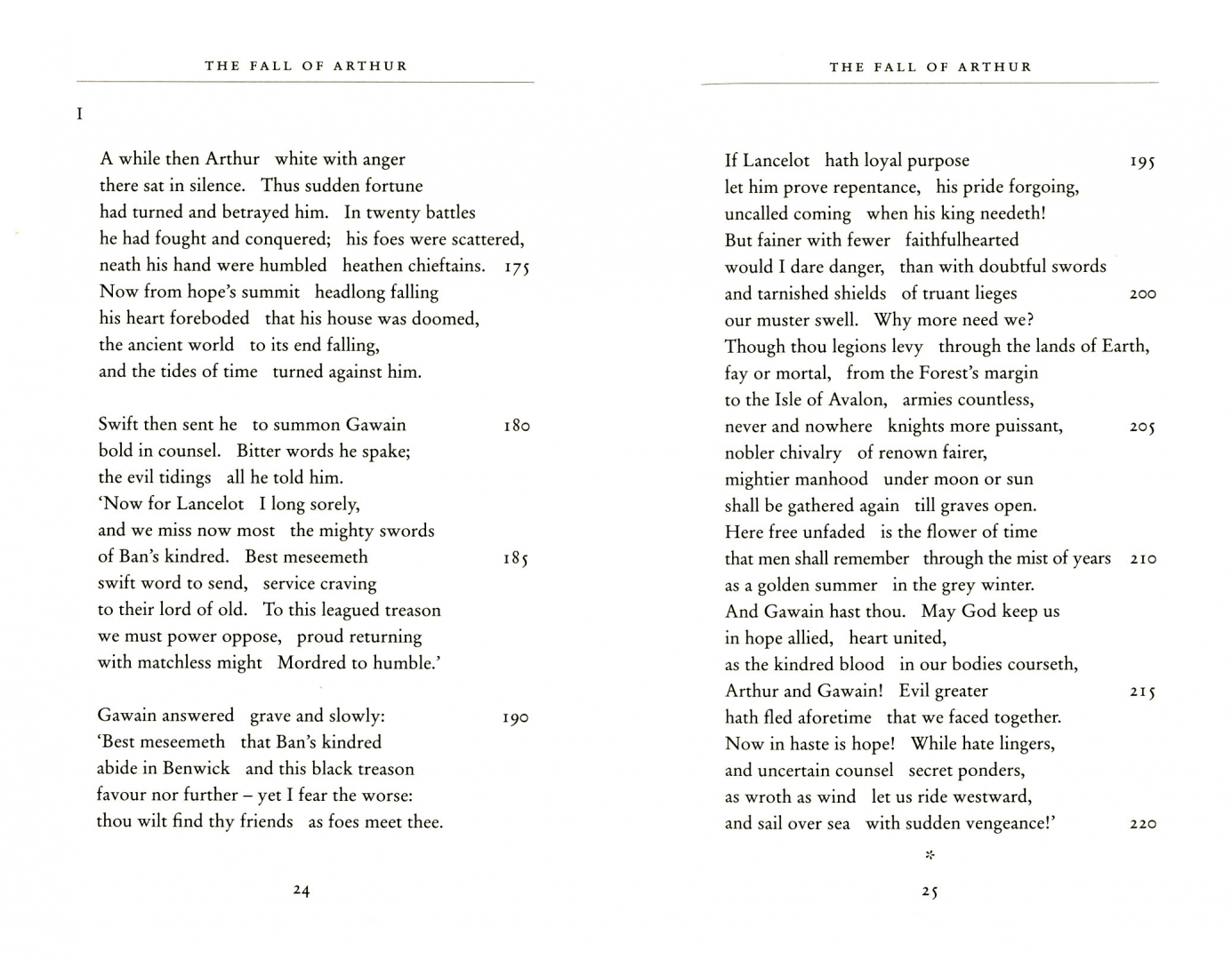 The Fall of Arthur, the only venture by J.R.R. Tolkien into the legends of Arthur King of Britain, may well be regarded as his finest and most skilful achievement in the use of the Old English alliterative metre, in which he brought to his transforming perceptions of the old narratives a pervasive sense of the grave and fateful nature of all that is told: of Arthur's expedition overseas into distant heathen lands, of Guinevere's flight from Camelot, of the great sea-battle on Arthur's return to Britain, in the portrait of the traitor Mordred, in the tormented doubts of Lancelot in his French castle.