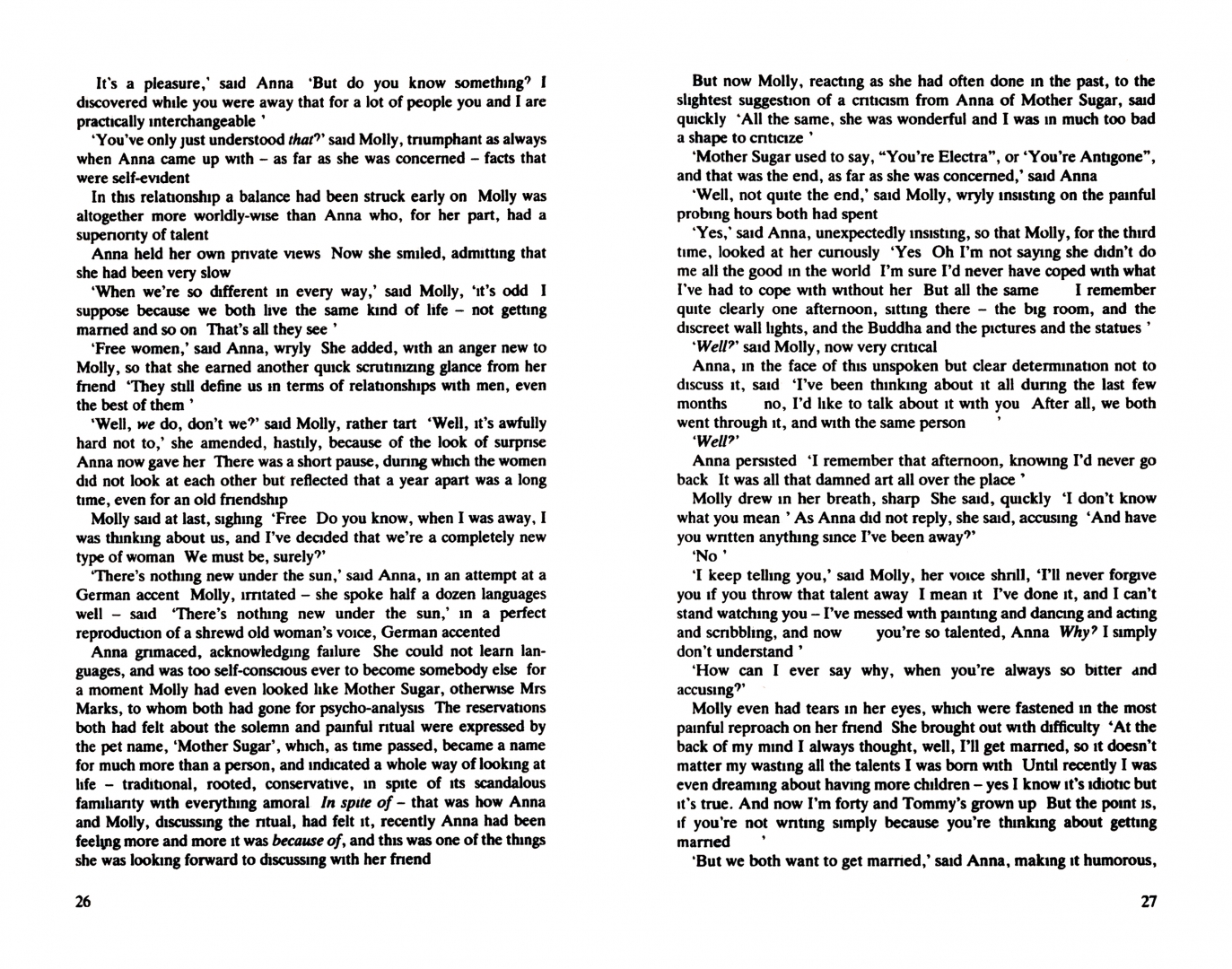 Anna Wulf is a young novelist with writer’s block. Divorced, with a young child, and disillusioned by unsatisfactory relationships, she feels her life is falling apart. Fearing the onset of madness, she records her experiences in four coloured notebooks. The black notebook addresses her problems as a writer; the red her political life; the yellow her relationships and emotions; and the blue becomes a diary of everyday events. But it is the fifth notebook – the Golden Notebook – which is the key to her recovery and renaissance.