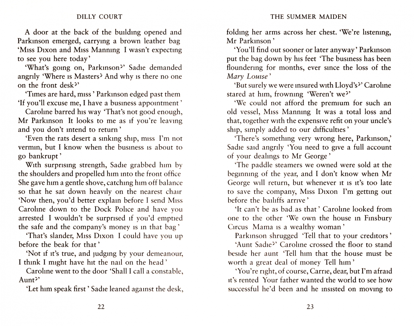 1873. When Carrie Manning's father dies her mother, Esther, is heartbroken. Essie leaves London to convalesce with her good friend Lady Alice, and it is down to Carrie to look after her family and take charge of the shipping company that her father has left behind.
