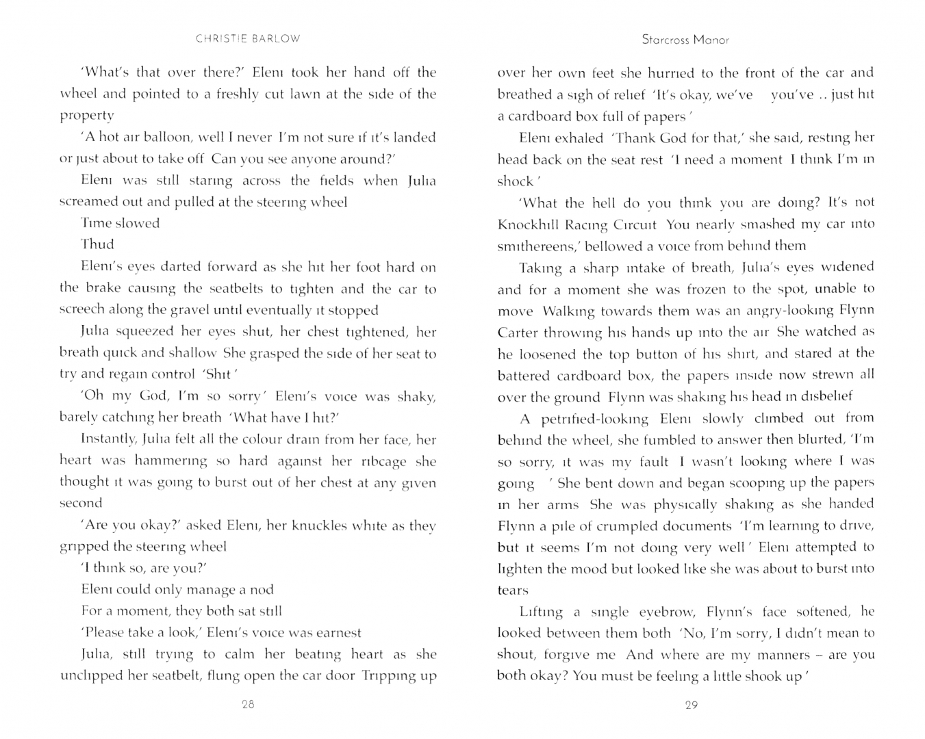 When Julia discovers Flynn’s plans for beautiful Starcross Manor her greatest fears come true. Because Flynn’s dreams of turning Starcross into a luxury hotel could ruin Julia’s dreams…and finish off the community of Heartcross for good.