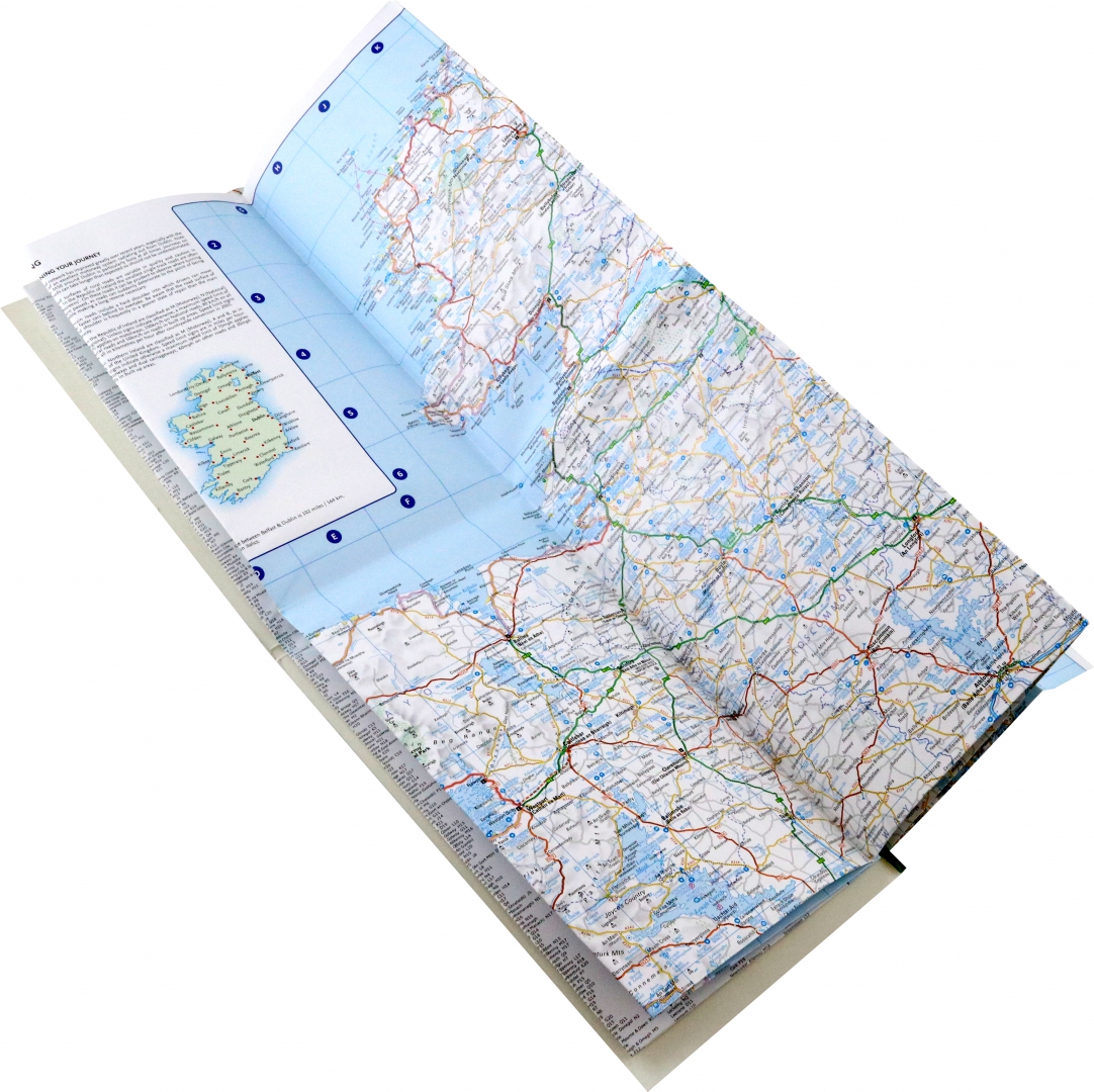 Large full colour map of the whole of Ireland showing the road network in detail, and with a special emphasis on places of tourist interest.