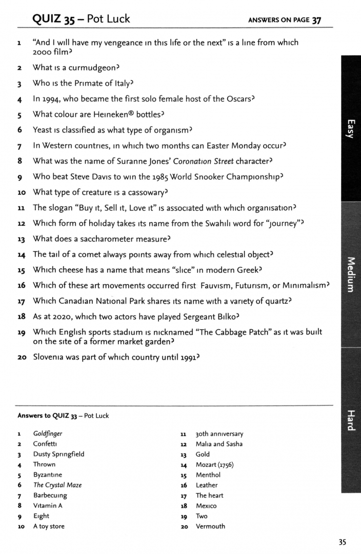 Arranged in easy, medium and hard sections, these quizzes offer something for everyone. Perfect for playing with friends and family!