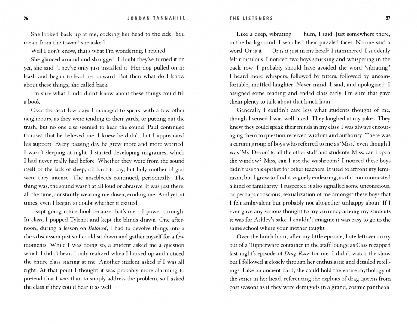 While lying in bed next to her husband one night, Claire Devon hears a low hum that he cannot. And, it seems, no one else can either. This innocuous noise begins causing Claire headaches, nosebleeds, insomnia, gradually upsetting the balance of her life, though no obvious source or medical cause can be found. When she discovers that a student of hers can also hear the hum, the two strike up an unlikely and intimate friendship. Finding themselves increasingly isolated from their families and colleagues, they fall in with a disparate group of neighbours who also perceive the sound. What starts as a neighbourhood self-help group gradually transforms into something far more extreme and with far-reaching, devastating consequences.