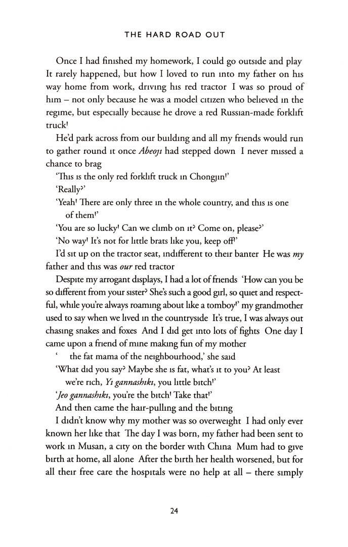 Clear-eyed and resolute, Jihyun’s extraordinary story reveals a Korea far removed from the talk of nuclear weapons and economic sanctions. She remains sanguine despite the hardship. Recalling life’s tiny pleasures even at her darkest moments, she manages to instill her tale with incredible grace and humanity.