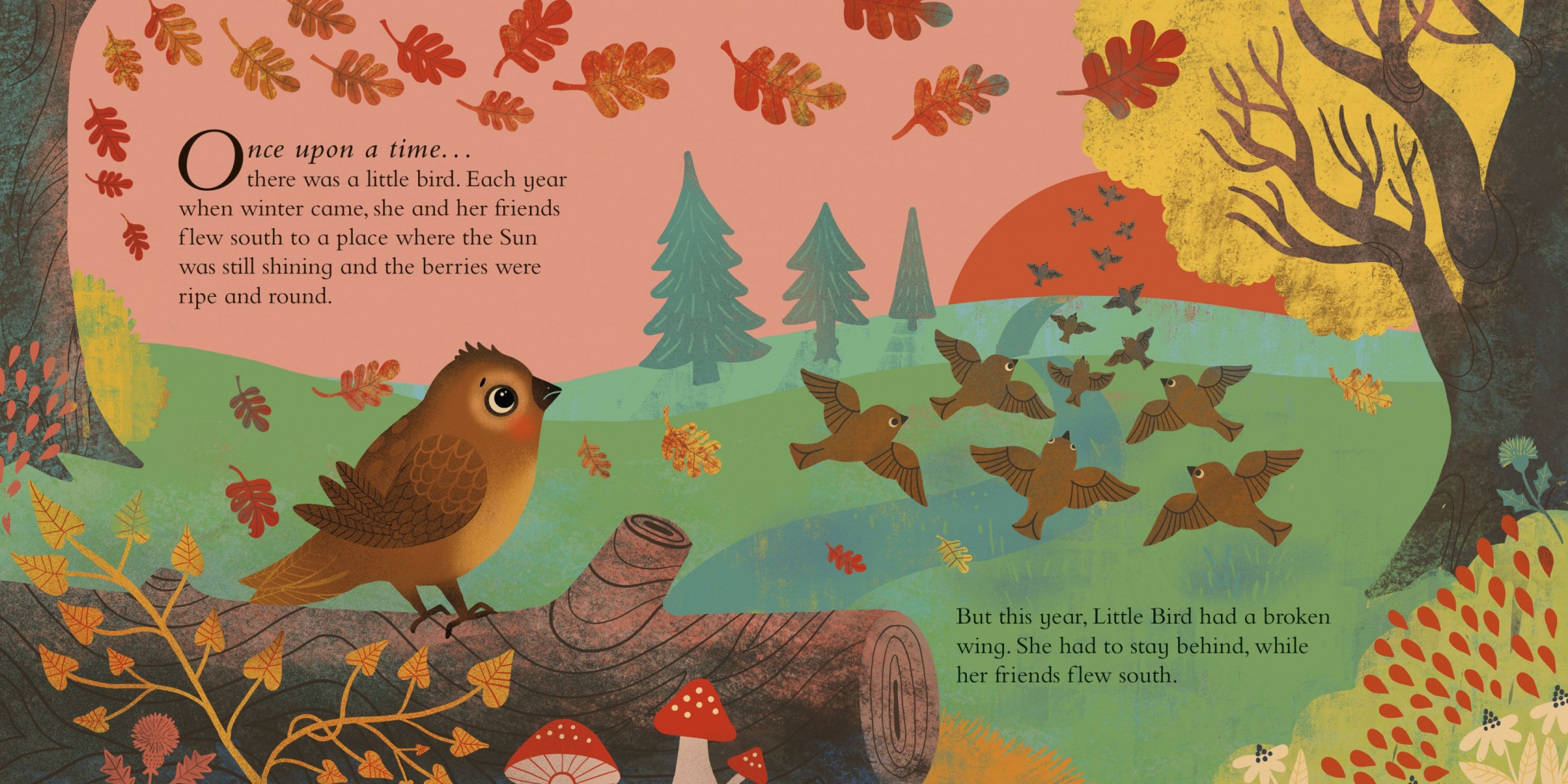Little Bird has broken her wing and can't join her friends in flying south for the winter. Cold and unsure where to find shelter, Little Bird hears kind voices calling to her - they offer shelter, food, and even a place for her to sing to her heart's content!