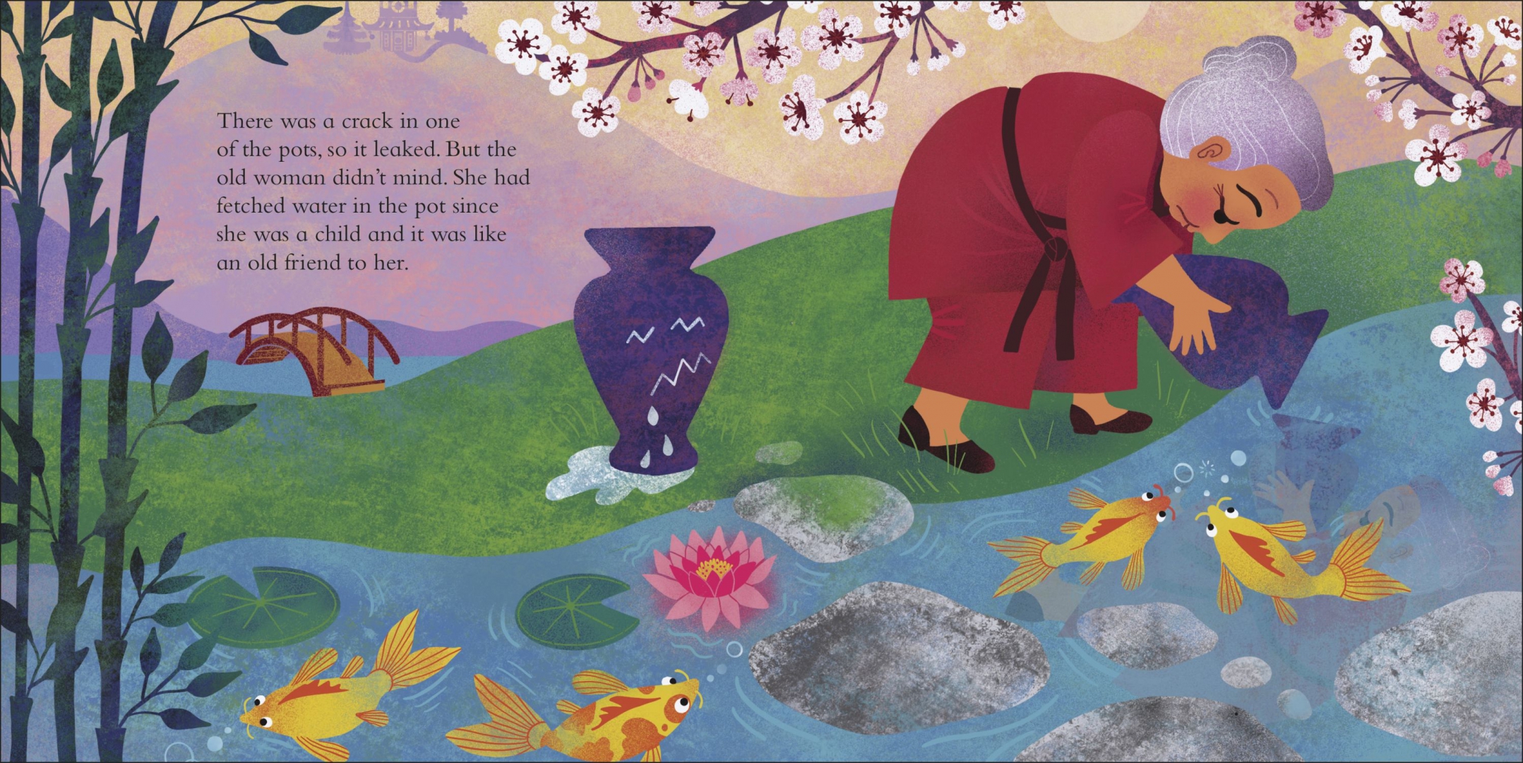 Every day, an old woman fetches water from the river using two pots. One of the pots leaks, but the old woman sees the good that the leaking pot brings to the world. This charming re-telling of the Chinese tale is the perfect length for bedtime reading and Maja Andersen's colourful illustrations bring the magic and wonder of the tale to life. It is sure to be a storybook that little ones will treasure forever.