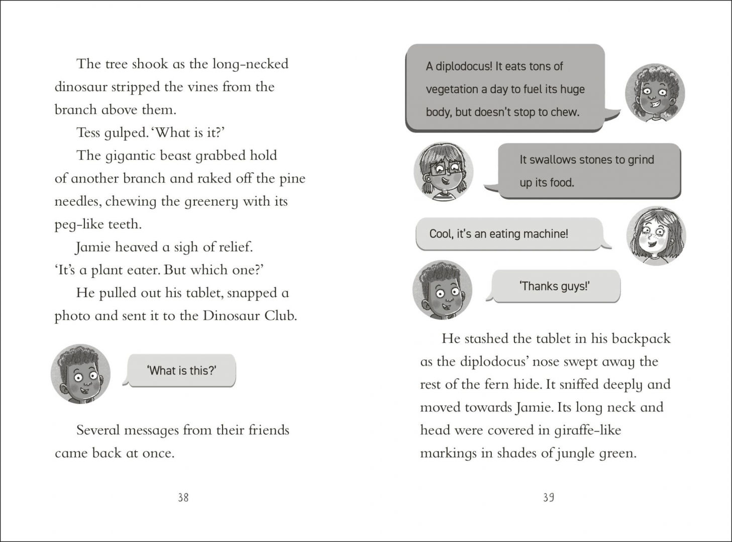 Meet Jamie, a member of the Dinosaur Club. They are a network of kids around the world who love to share dinosaur knowledge, help identify fossils, post dino discoveries, and chat about all things prehistoric. Jamie has just moved to Ammonite Bay, a stretch of coastline famous for its fossils. He is busy exploring when he discovers some dinosaur footprints and is transported back to the time of the dinosaurs! It sounds like Jamie needs some help from the Dinosaur Club when he comes across a troubled Diplodicus...