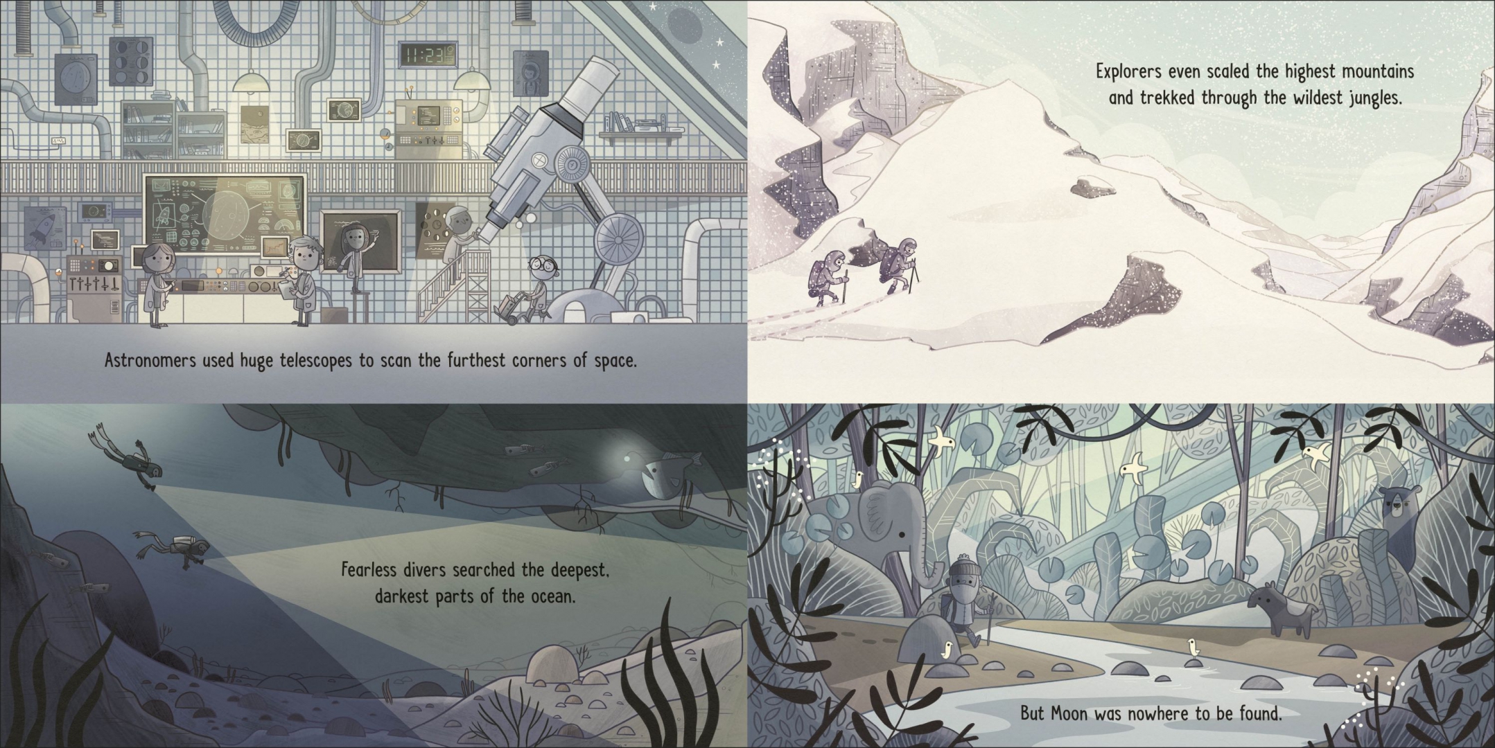 Space can be lonely, so Moon likes to watch people down on Earth. There's just one problem: when Sun is out, everybody on Earth is happy to see him, but when Moon is out, everyone goes to sleep. This makes Moon upset. What Moon doesn't know is that little Lucy loves to look up at Moon, and one clear night she sees that Moon has disappeared. Can Lucy find Moon and will Moon learn just how much everybody actually loves her?