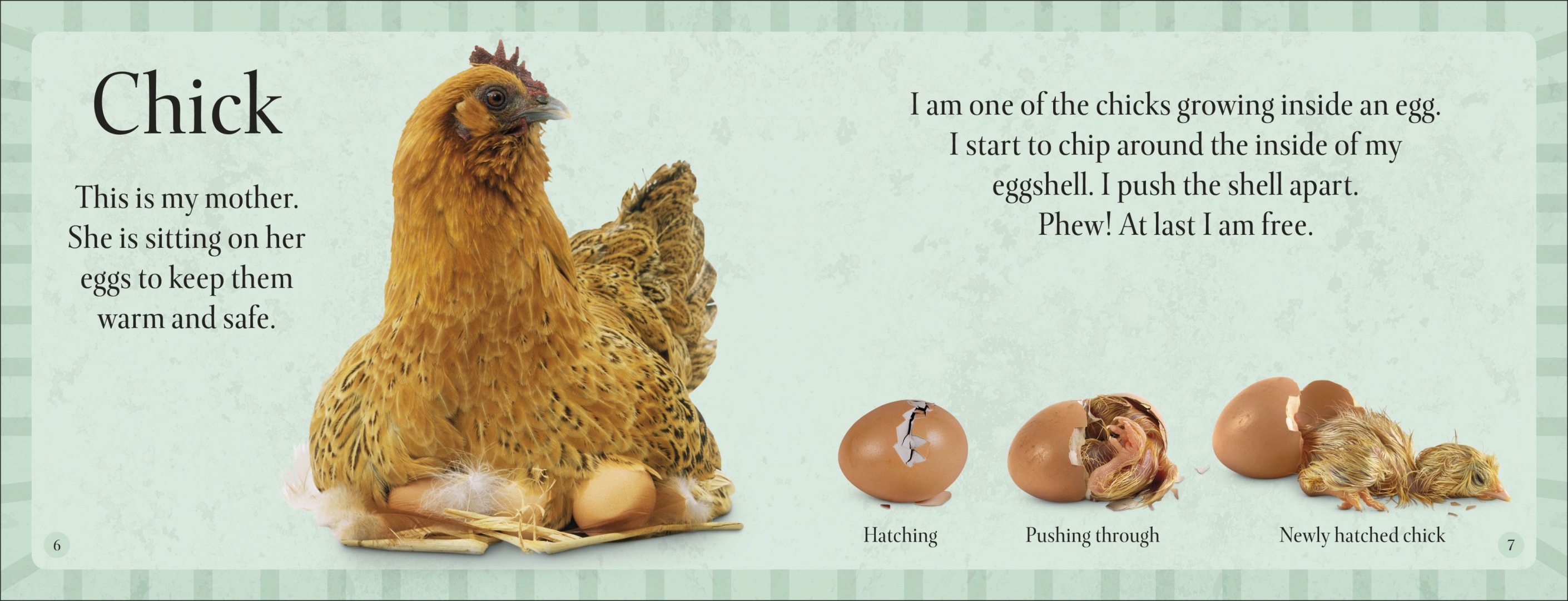 A series of clear photographs show the same animal at several different stages in its early life. Your child can discover how a chick hatches from its egg and how a duckling's feathers turn from yellow to white. Packed with fun facts and easy-to-follow text, this nature book is ideal for reading aloud and developing your child's vocabulary.